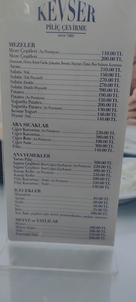 Welcome to Kevser Piliç Çevirme, located in the heart of Mudanya, where flavor and freshness unite to create an unforgettable dining experience. Their menu is a celebration of vibrant Turkish cuisine, highlighted by an array of mezeler including Acılı Ezme and Patlıcan Herse, each priced at TRY 15.00. You'll also find indulgent desserts like the delightful Kabak Tatlısı and Sütlü Kadayıf, both just TRY 12.00.